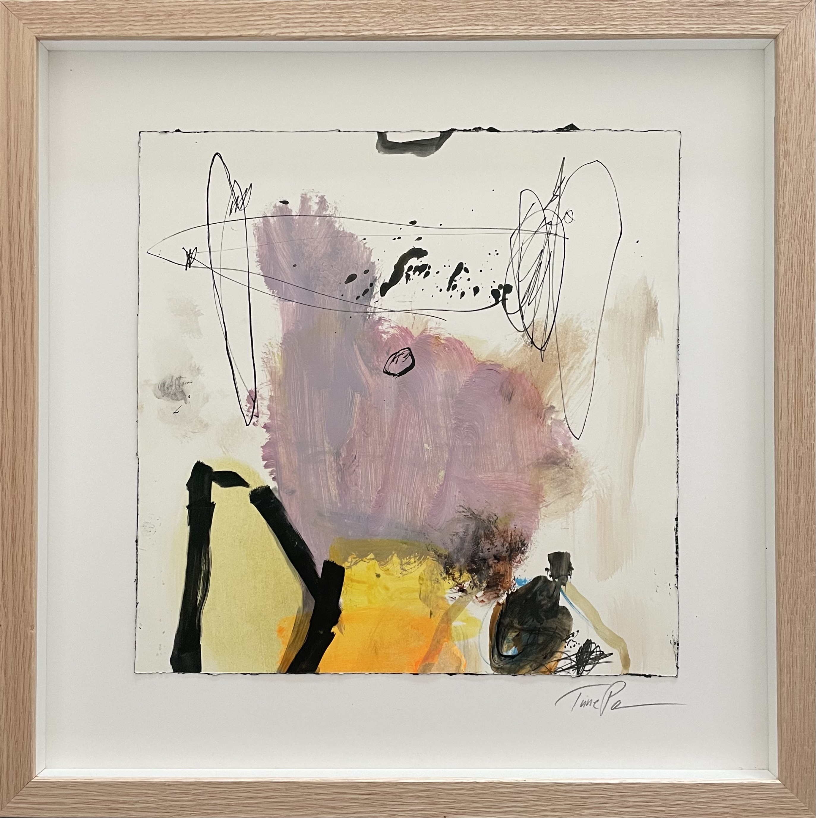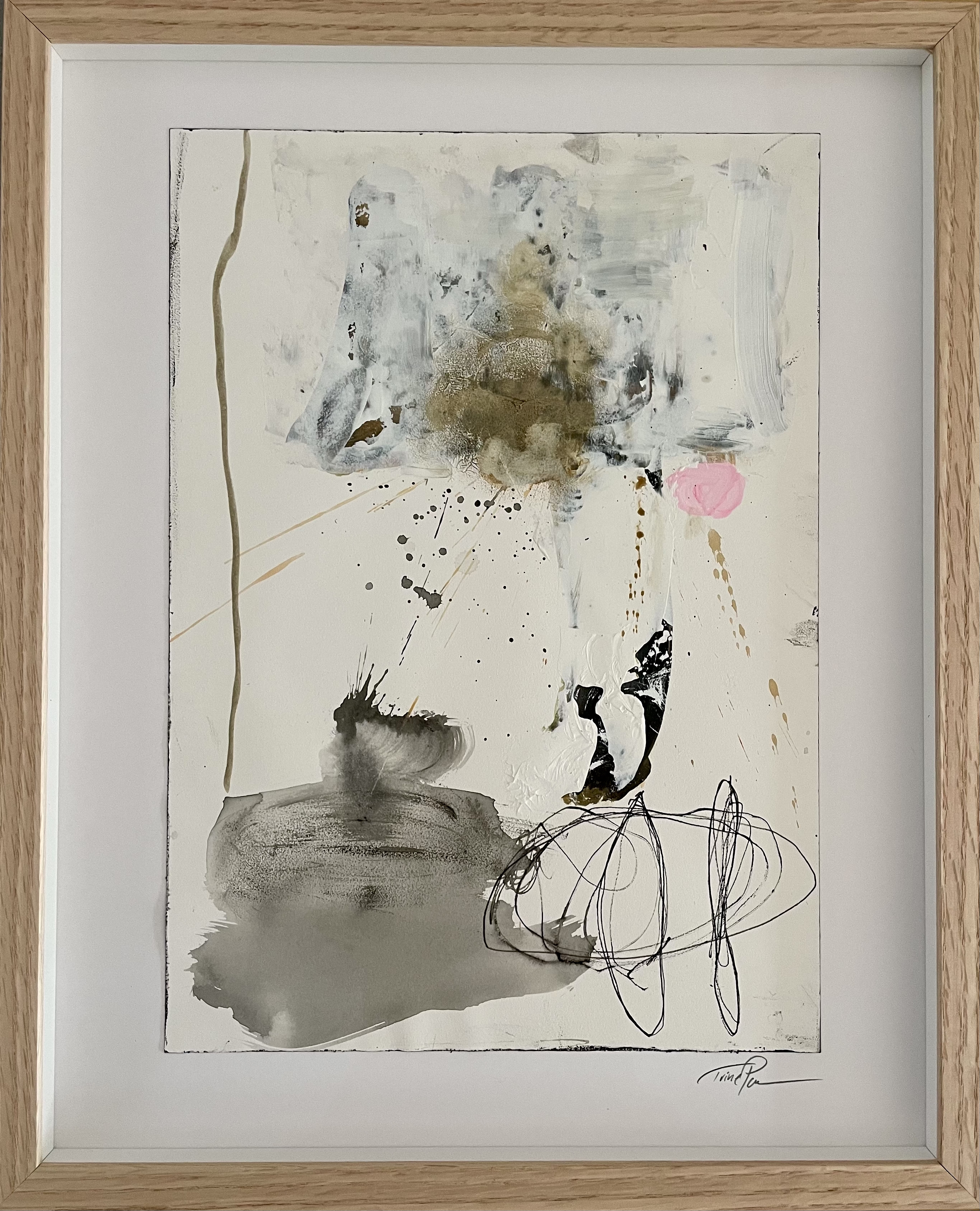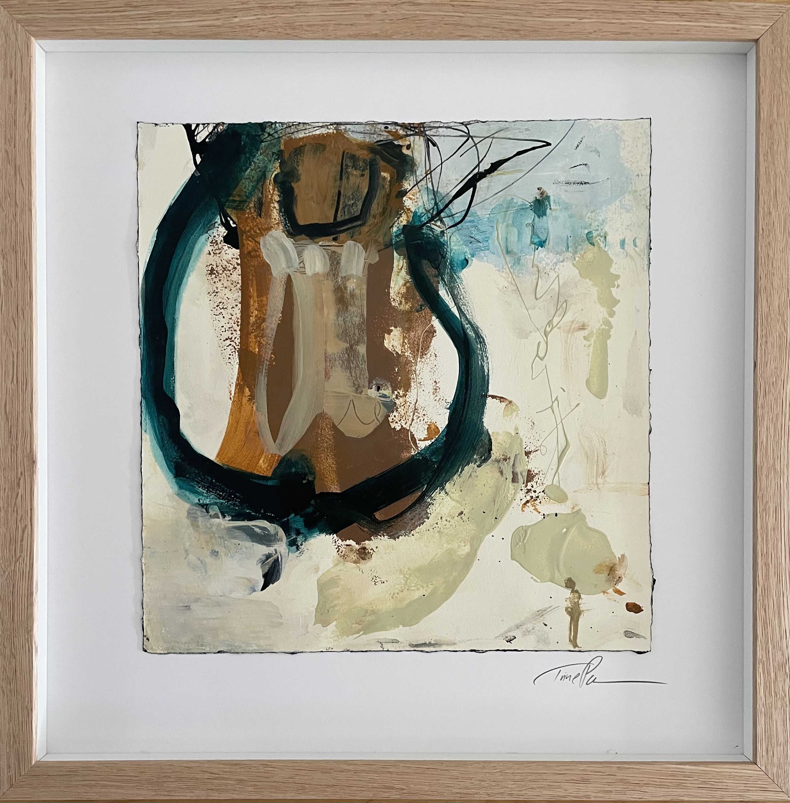 Unika malerier på akvarelpapir/kraftigt papir i speciallavet ramme.