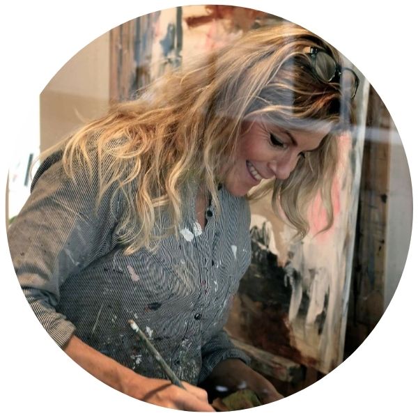 'Jeg maler intuitivt og skaber i spontanitet. Malerierne er følelsesudbrud og energiudladning - en konstant søgen i kaos og æstetisk orden'...