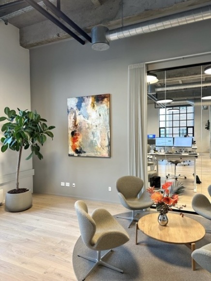 ”Trine var en stor hjælp for os, da vi ville udsmykke vores kontorer. Hun var hurtig og præcis til at finde nogle værker, som ville passe til os, lydhør over for vores ideer og tanker, og meget dygtig til at skabe en rød tråd gennem hele kontoret. Trines værker er i sig selv fantastiske, og hendes evner til at sammensætte dem og passe dem ind hos os, har virkelig bidraget til vores kontor på bedste vis. Det er en oplevelse, vi nyder hver dag. Resultatet taler for sig selv, og vi er enormt glade for værkerne og det liv de skaber her.”
